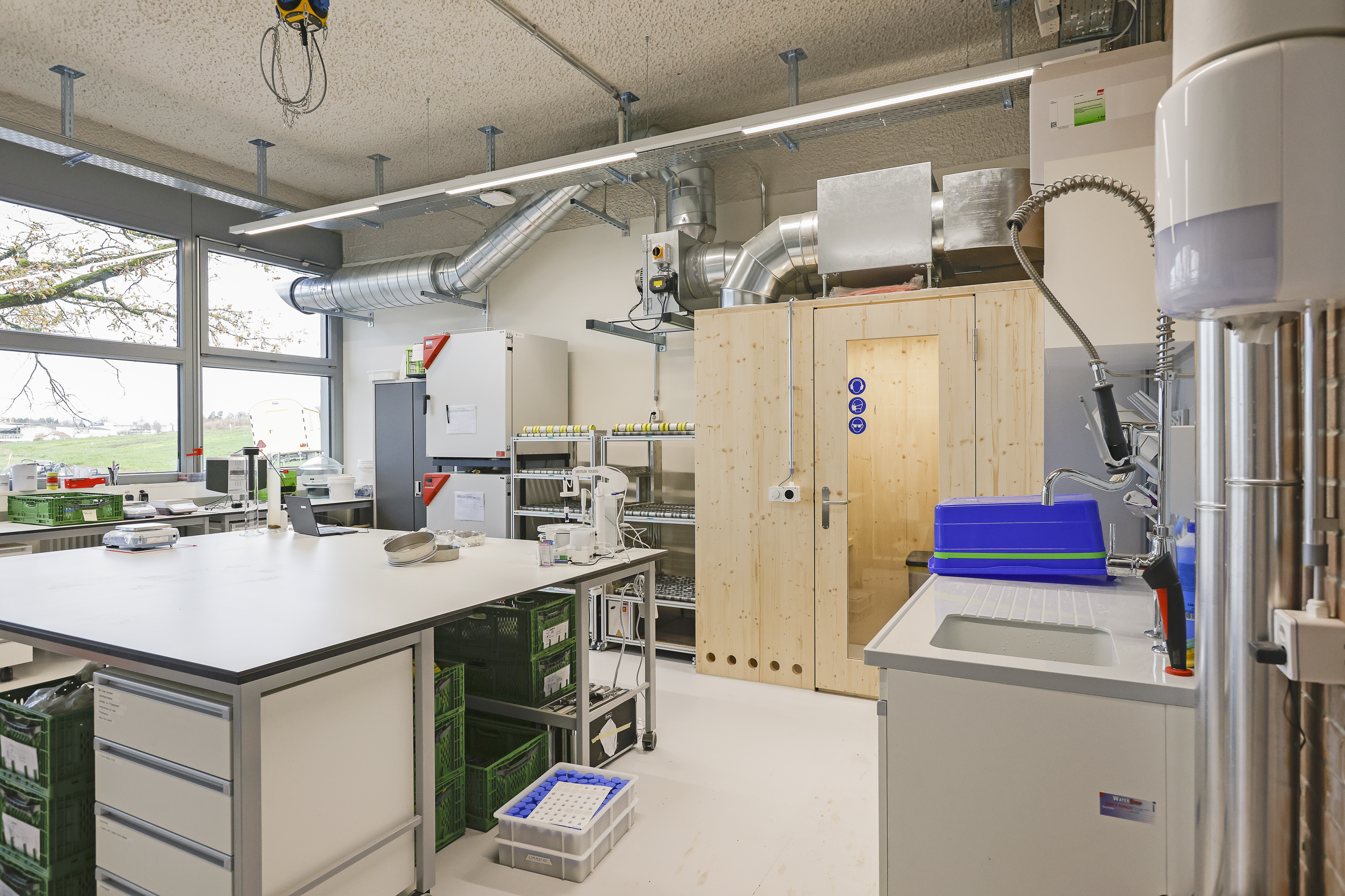 Um die bestehende Infrastruktur an der BFH-HAFL optimal auf die Abläufe der Analysen der Bodenproben und deren Aufbereitung auszurichten, wurde auf einer Fläche von 80 m2 ein neues Versuchslabor für angewandte Bodenforschung eingerichtet. Neben den Forschenden steht das Labor auch für individuelle Studierendenarbeiten zur Verfügung und eröffnet damit auch neue Möglichkeiten in der Ausbildung. Die Konzeption, Planung und schrittweise Umsetzung der erweiterten Laborkapazität fand von Frühjahr 2020 bis im August 2022 statt.